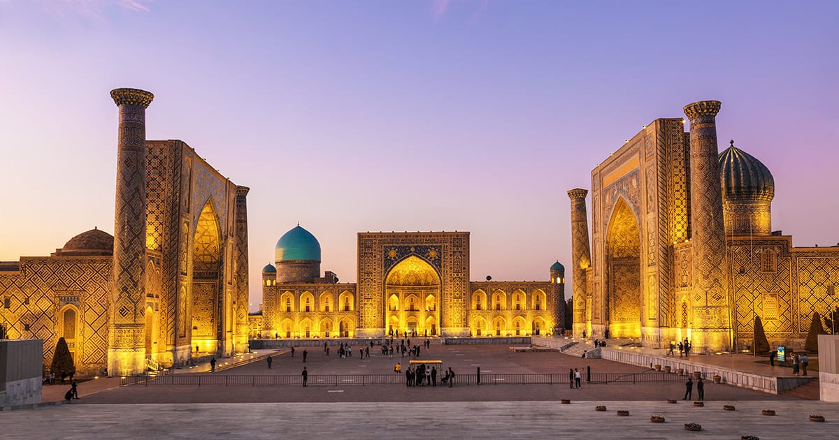 Prima colazione. Giornata dedicata alla visita della città simbolo dei luoghi della Via della Seta: la grandiosa piazza Registan con le tre straordinarie madrase di Ulug Begh, Shi Dor e Tilya-Kari, famose per la purezza delle linee e l’eleganza delle maioliche turchesi; il monumentale complesso dei mausolei Sach-i-Zinda; la moschea Bibi-Khanym, che sbalordisce per la ricchezza del decoro; il museo del sito archeologico di Afrassiab, l’antica Samarcanda abbandonata all’inizio del XII secolo dopo la conquista dei mongoli, l’osservatorio di Ulugh Begh, il bellissimo mausoleo di Gur Emir che ospita la tomba del grande Tamerlano. Pranzo e cena in ristorante. Pernottamento in hotel.